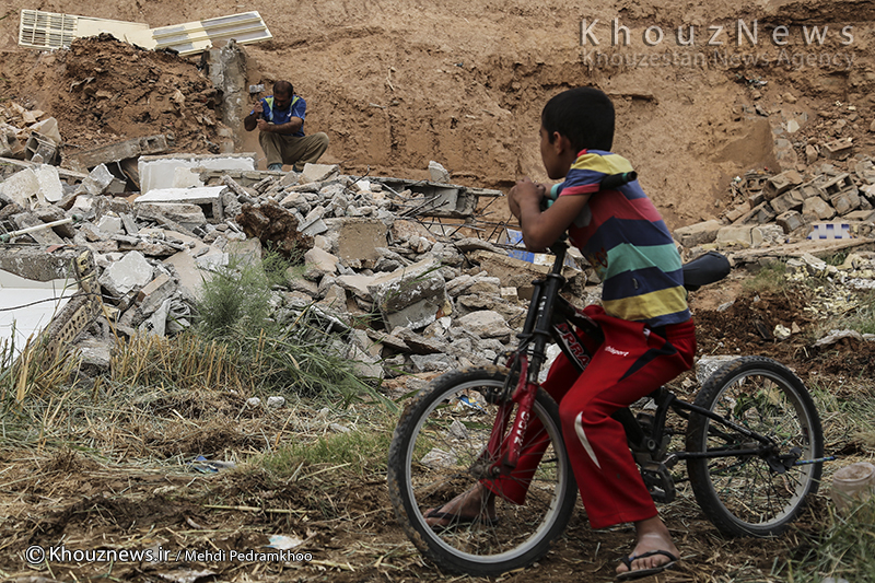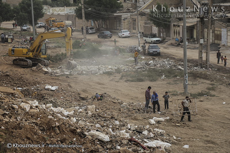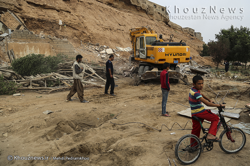 تصاویر / تخریب سکونت گاه های غیر مجاز و در معرض خطر کوی منبع آب توسط شهرداری اهواز