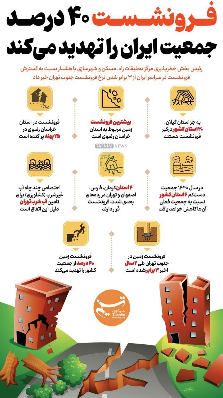 اینفوگرافیک/ فرونشست ۴۰ درصد جمعیت ایران را تهدید میکند