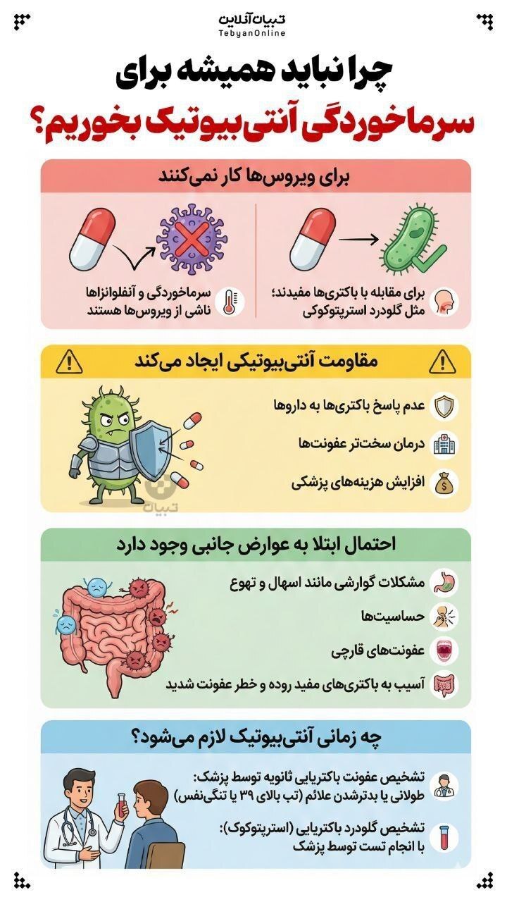 اینفوگرافیک/ چرا نباید همیشه برای سرماخوردگی آنتیبیوتیک مصرف کرد؟